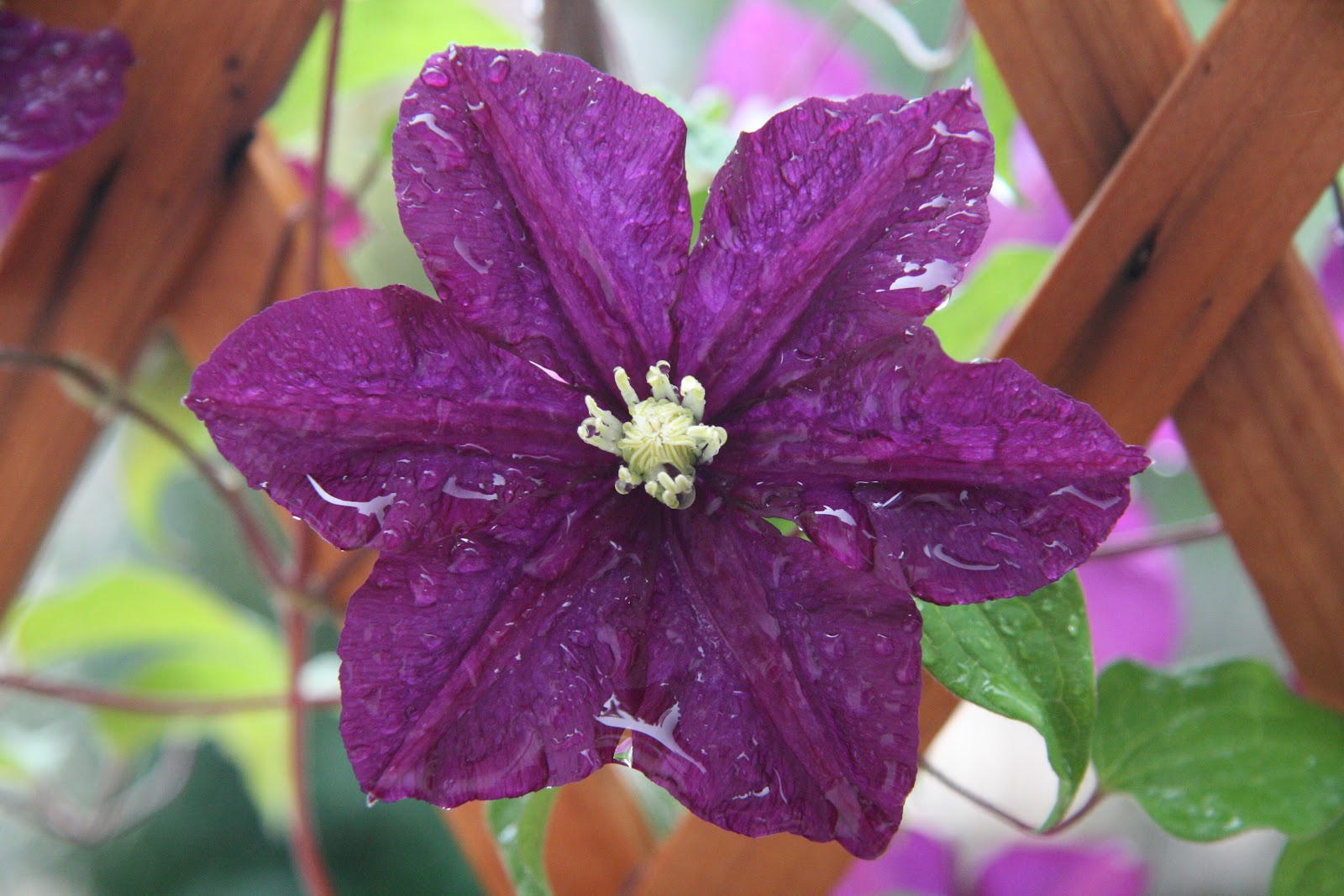 Fiori grandi, vellutati dal rosso-violetto al viola porpora con una barra un pò rossa. Le antere sono gialle su filamenti bianco-verdi. Coltivata da Fra Stefan Franczak della Polonia ed introdotta nel Regno Unito da